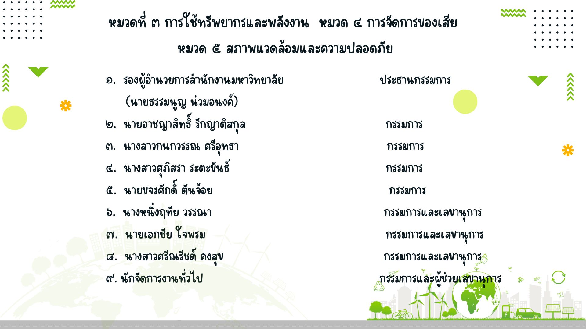 คณะกรรมการขับเคลื่อนโครงการสำนักงานสีเขียว (Green Office)