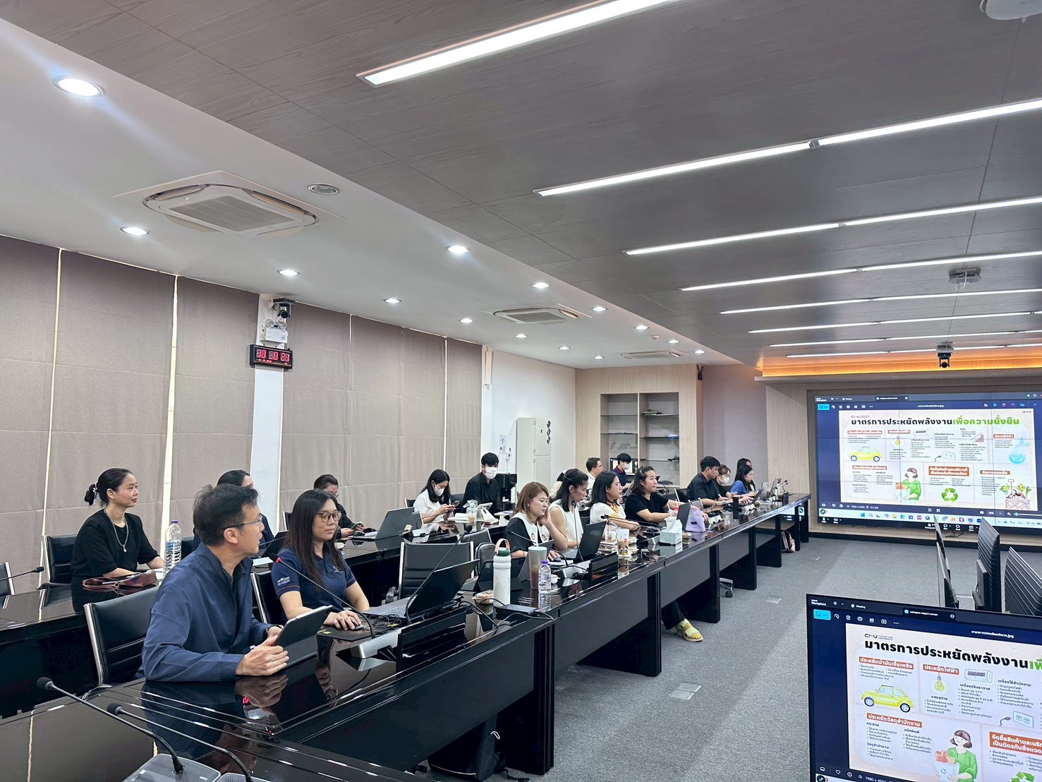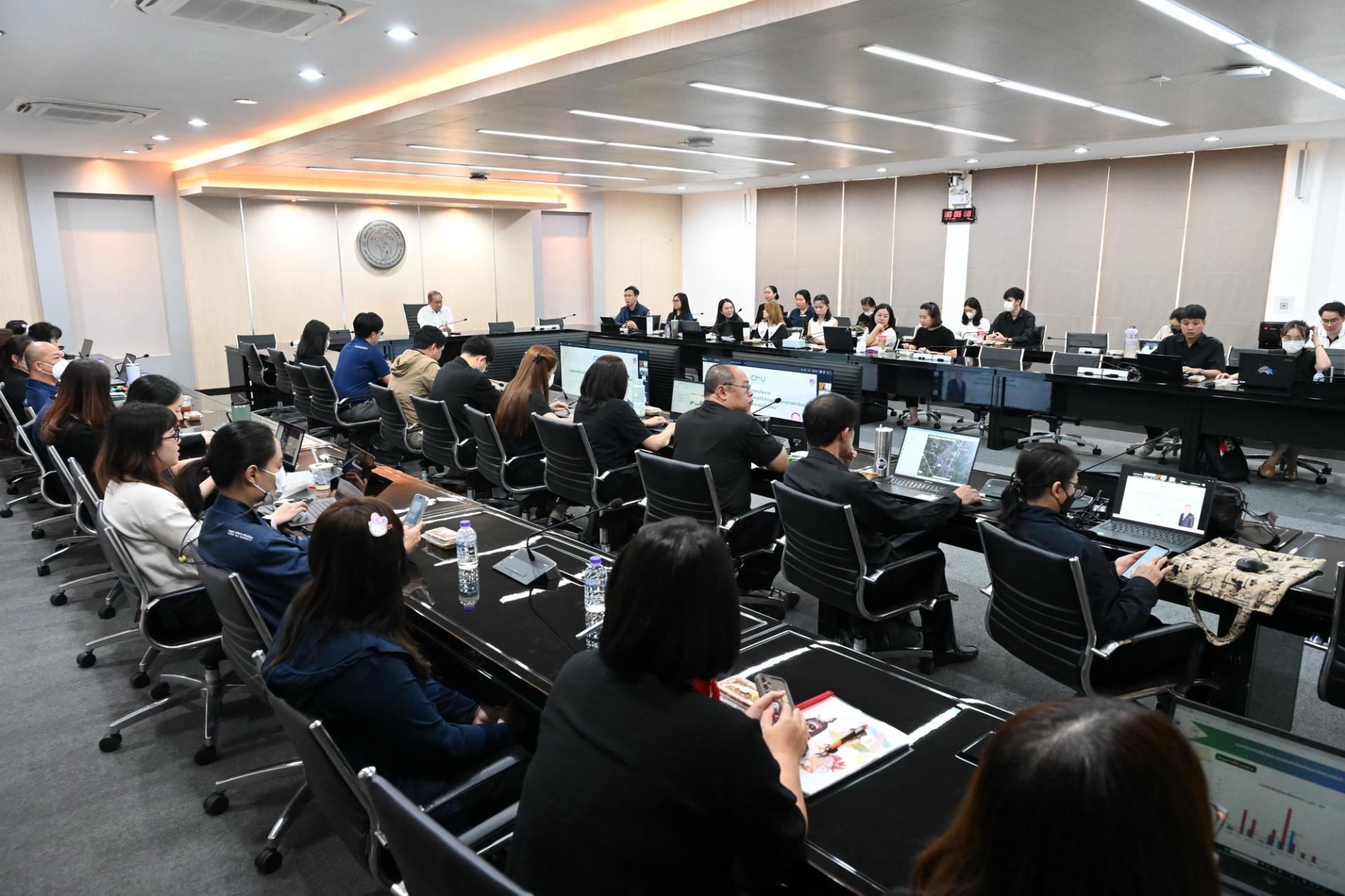 สำนักงานมหาวิทยาลัย มหาวิทยาลัยเชียงใหม่จัดกิจกรรม "ชี้แจงแนวทางการบริหารจัดการคาร์บอนของสำนักงานมหาวิทยาลัย เพื่อก้าวสู่ความเป็นกลางทางคาร์บอน (Carbon Neutral University) และการปล่อยก๊าซเรือนกระจกสุทธิเป็นศูนย์ (Net Zero)" โดยมีรองศาสตราจารย์ประเสริฐ ฤกษ์เกรียงไกร รองอธิการบดีมหาวิทยาลัยเชียงใหม่ เป็นประธานในการให้ความรู้และมอบนโยบายในหัวข้อ การขับเคลื่อนเป้าหมายยุทธศาสตร์ความเป็นกลางทางคาร์บอนของมหาวิทยาลัยเชียงใหม่ ให้แก่ผู้บริหารและเจ้าหน้าที่ในทุกส่วนงานสังกัดสำนักงานมหาวิทยาลัย เพื่อสร้างการรับรู้นโยบายการจัดการคาร์บอนของสำนักงานมหาวิทยาลัย และสนับสนุนกลไกการมีส่วนร่วมของผู้ปฏิบัติงานทุกระดับในการสร้างวัฒนธรรมองค์กรที่เป็นต่อสิ่งแวดล้อมอย่างยั่งยืน แก่คณะกรรมการดำเนินงานโครงการ OOU Go Green สำนักงานมหาวิทยาลัย มหาวิทยาลัยเชียงใหม่ ในวันจันทร์ที่ 30 มีนาคม 2569 เวลา 09.00 - 12.00 น. ณ ห้องประชุมพระยาศรีวิสารวาจา สำนักงานมหาวิทยาลัย