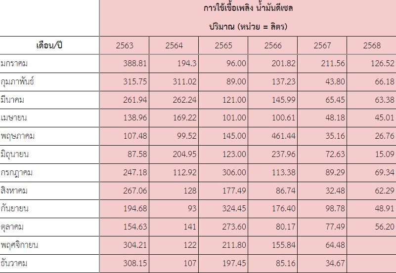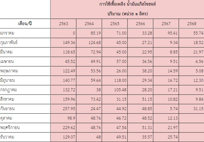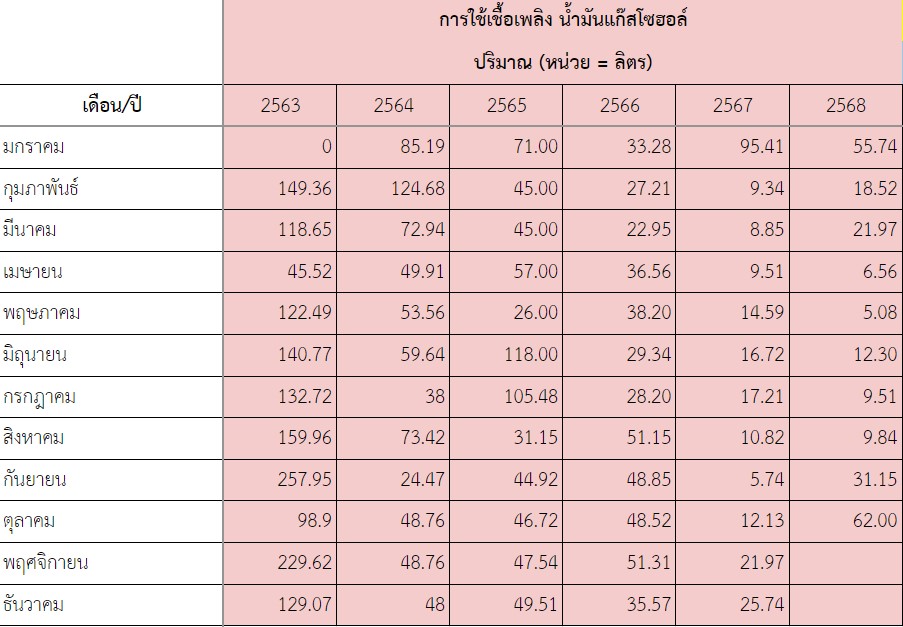ข้อมูลปริมาณการใช้เชื้อเพลิง